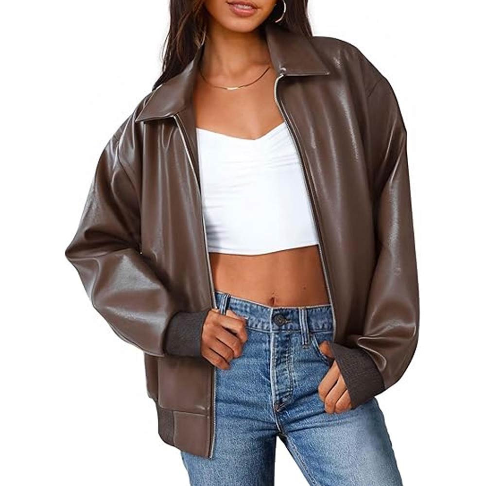Synthetic leather is a light material that can be easily stored for travel and daily life. It is a comfortable material that offers new style options for warm or cool weather. There are also jackets with faux fur lining for a cozy, warm option when the temperature drops.