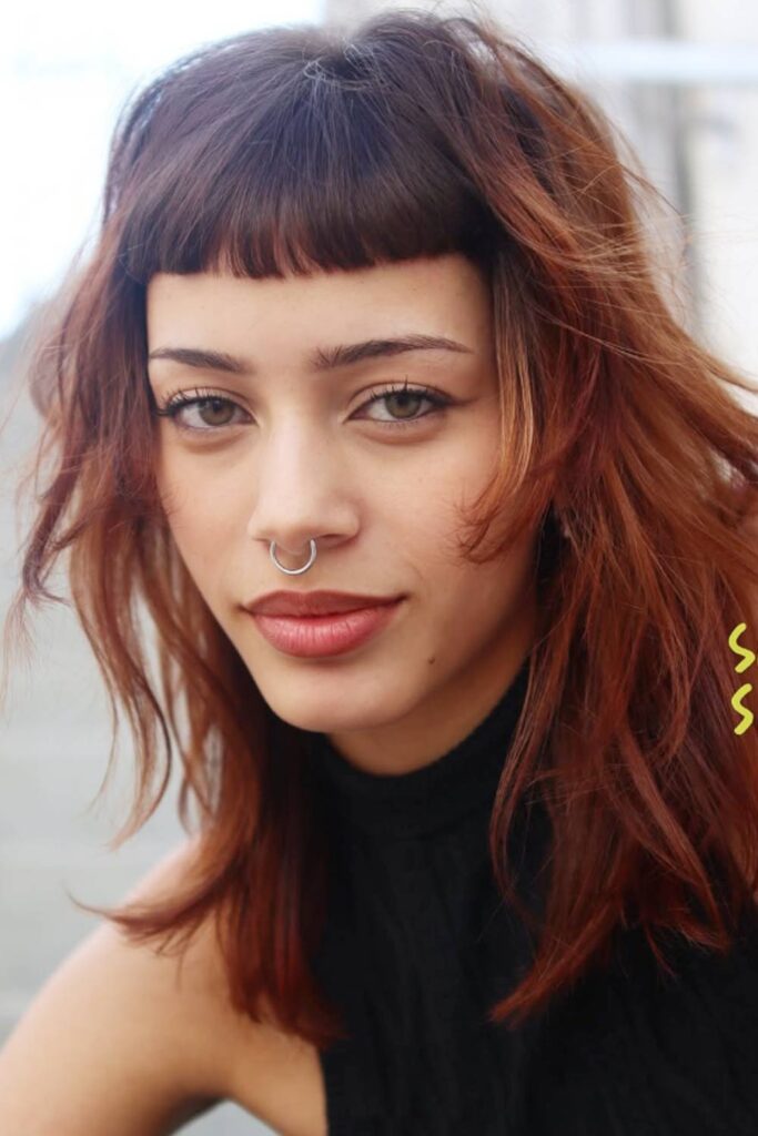 To keep that edgy vibe up, you need a fitting cut and a skilled stylist at hand. We can help you with the former by presenting this shaggy layered cut with long bangs. The latter part is not your responsibility.